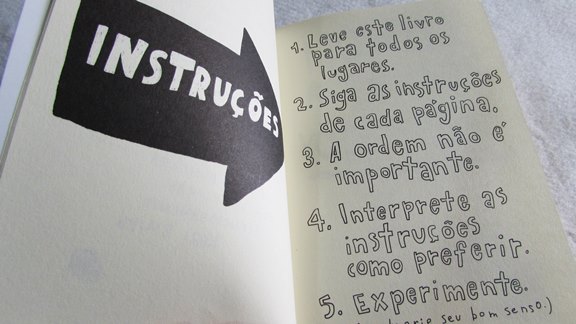 O destrua este diário em qualquer lugar, da autora Keri Smith, é uma versão pocket do livro mais popular da autora. A principal proposta é levar o livro para passear. Eu vou ter que levá-lo no trabalho, no parque, no transporte público... Já imagino a cena: eu, as tintas, os lápis de cor e o livro no ônibus. Tudo caindo nas curvas e o povo me olhando. Terei que inventar outra coisa para fazer.