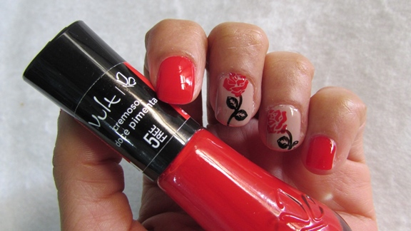 A primavera chegou e trouxe muitas flores para colorir a cidade. Por aqui tem muitas árvores com flores e por isso escolhi que iria fazer uma nail art florida. Já faz tempo que criei essa película com rosa vermelha e só estava esperando pela chegada da primavera para usá-la.